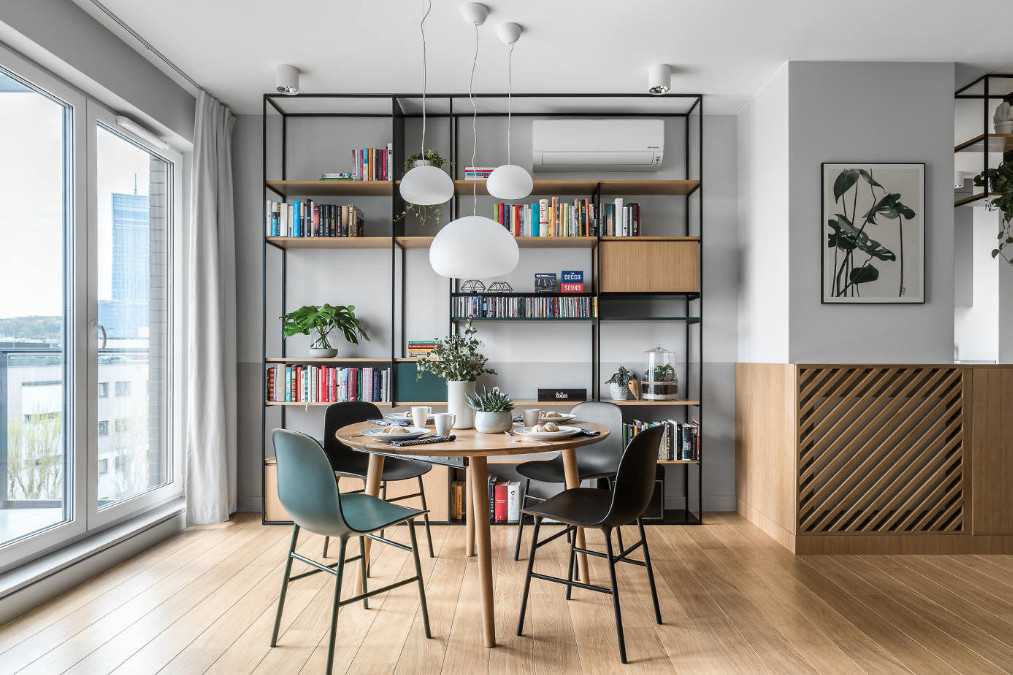 ▲在全家人看來,餐廳不應(yīng)該被獨(dú)立出去,而是需要與客廳相連,打造一個(gè)通透、相融的功能區(qū),餐桌旁定制的展示架上整齊的擺放著書籍,唾手可得的便捷令等待的時(shí)光也變得美好。