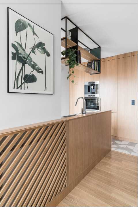 ▲因?yàn)槿~石 十分注重空間的美觀性,所以一些可能有礙的物件,全被定制的木料包圍,營造出視覺上潔凈、統(tǒng)一的感受。