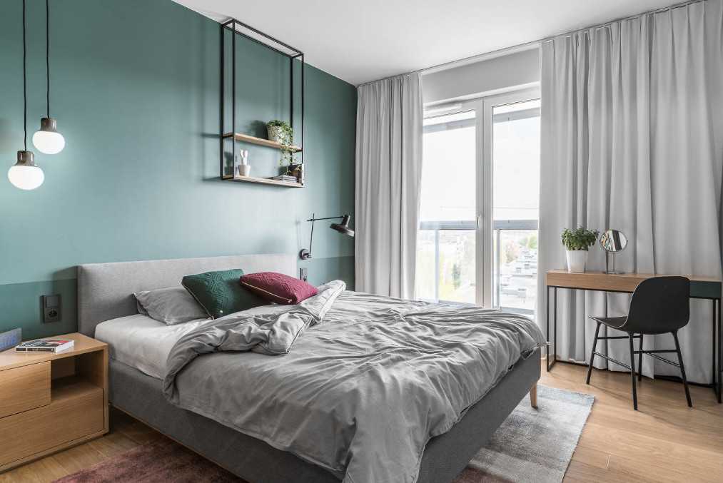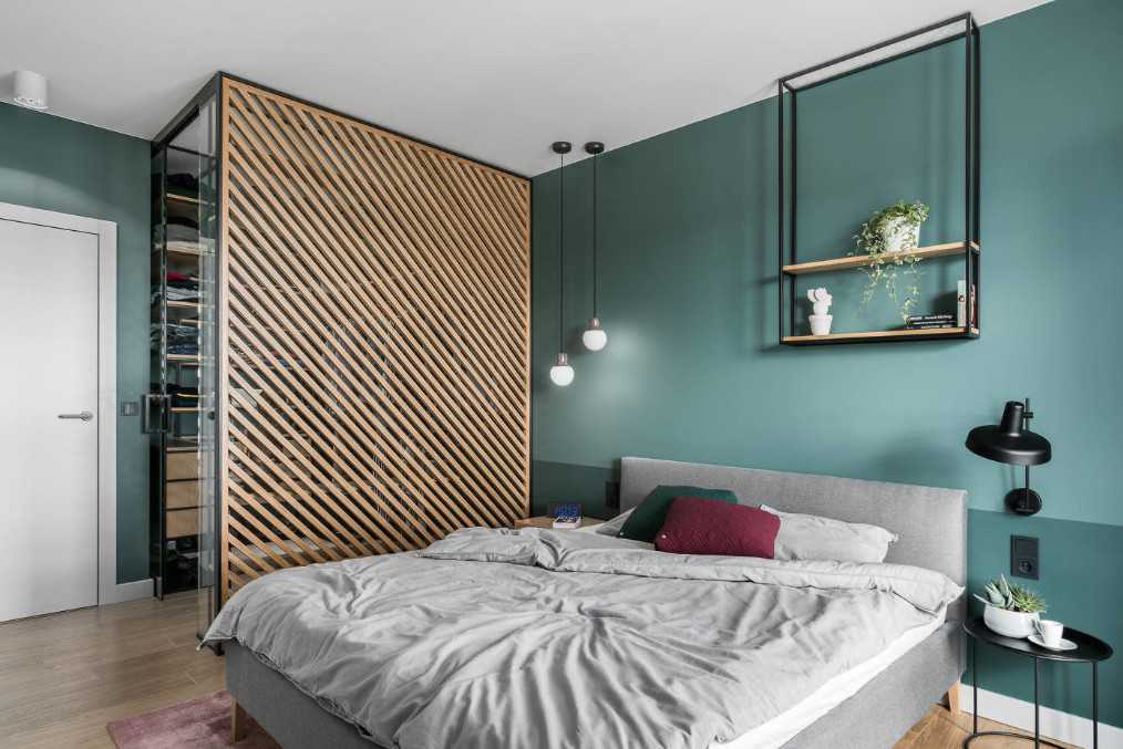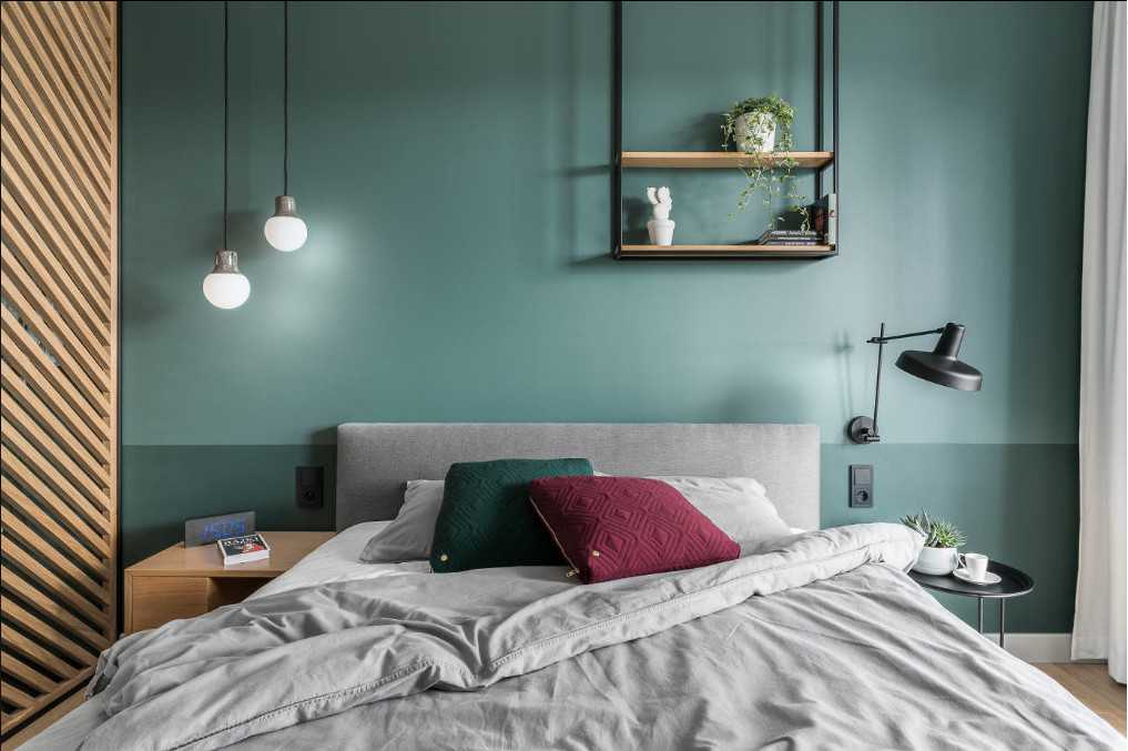 ▲以綠色為貫穿室內(nèi)的線索,卻通過色彩的深淺營造出豐富的視覺效果,僅是臥室,綠色就被分為了四層,首層是鮮活的盆栽,二、三層是墻面的漸變,四層是抱枕。
