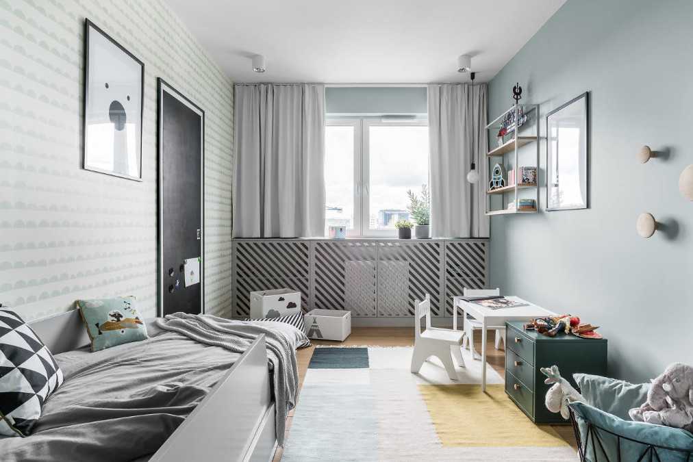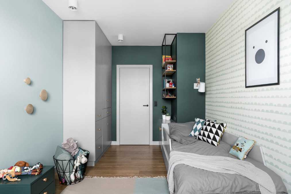 ▲兒童房延伸了對(duì)森林綠的使用,并在地毯、墻面、靠枕的物品選擇上使用了更為跳躍、明亮的淺綠,為孩子帶來專屬的活力與趣味。