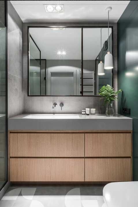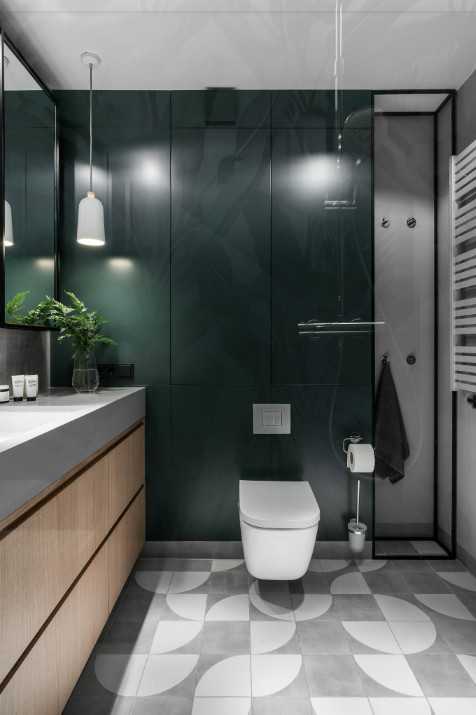 ▲洗浴室在綠色的基礎(chǔ)上,增加了植物的圖案,更加呼應(yīng)了室內(nèi)的自然氣息。