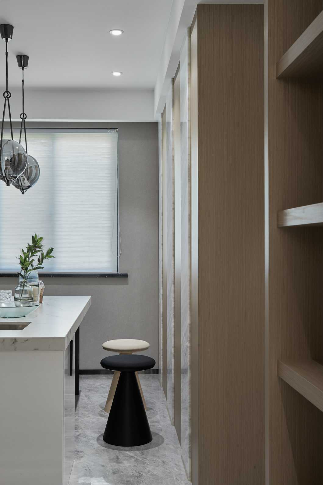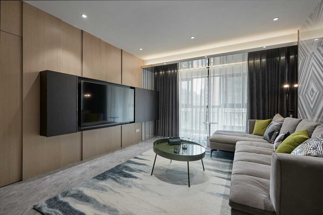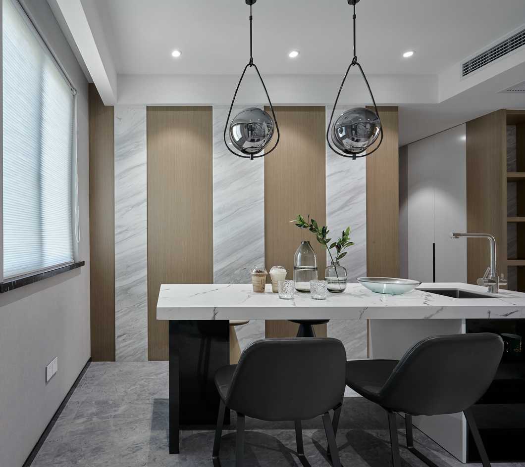 客餐廳縱向線條拉伸感極強,不同材質(zhì)相互碰撞,以及恰當(dāng)?shù)墓庥皩^(qū)域空間揉為一個整體。電視背景墻高低錯落,并且把電視柜“抬”到了墻上,保留儲物功能的同時帶入了當(dāng)代設(shè)計流行元素。凝練簡約現(xiàn)代的生活質(zhì)感,光影襯出選材的自然肌理,在木頭的溫潤與石材的剛硬凌冽交織一起,勾勒出獨特的空間氣質(zhì)。
