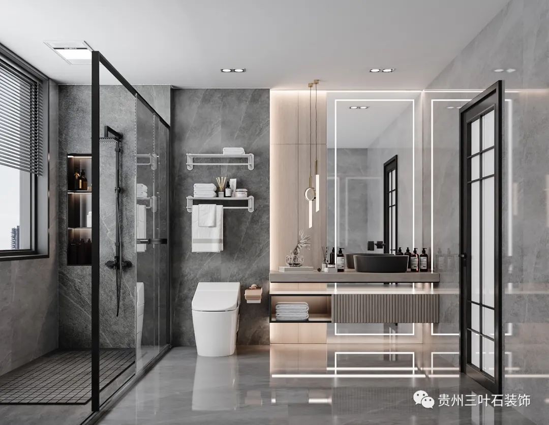 11、衛(wèi)生間空間足夠的話一定要做干濕分離,最好選擇玻璃淋浴房設(shè)計,為了安全起見需要貼上防爆膜。